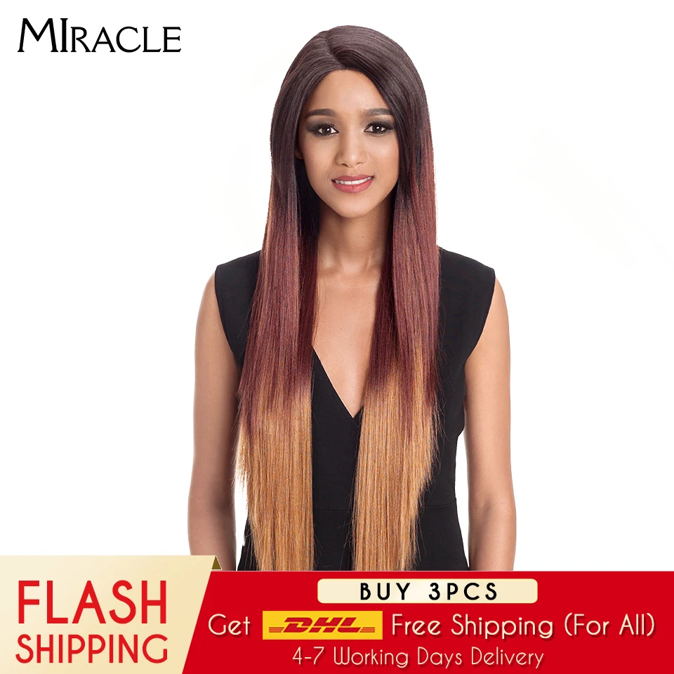 HIGH QUALITY Noble Hair Ombre Wig Colorful Heat Resistant Synthetic Hair Can Be Permed 32"Inch Long Straight Lac