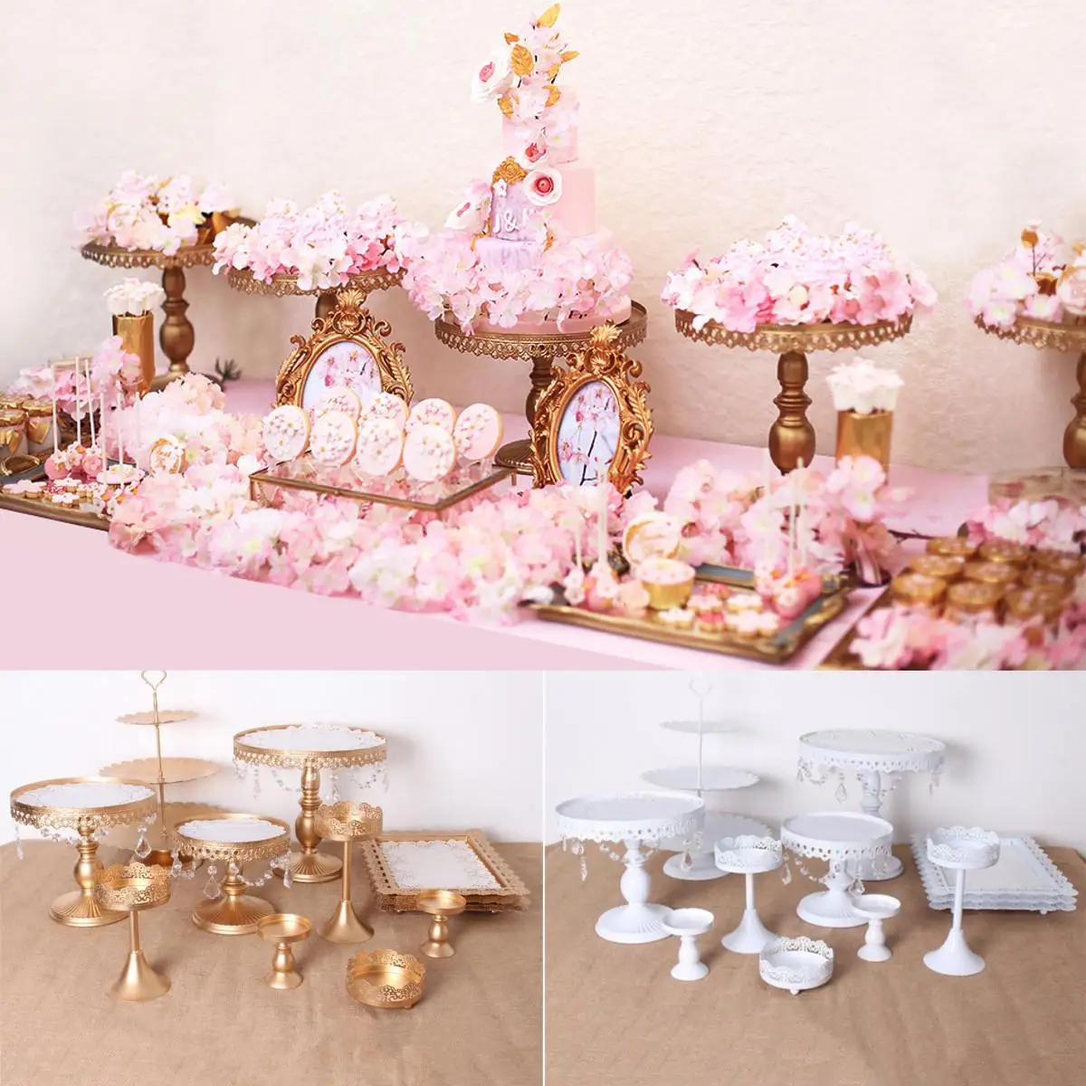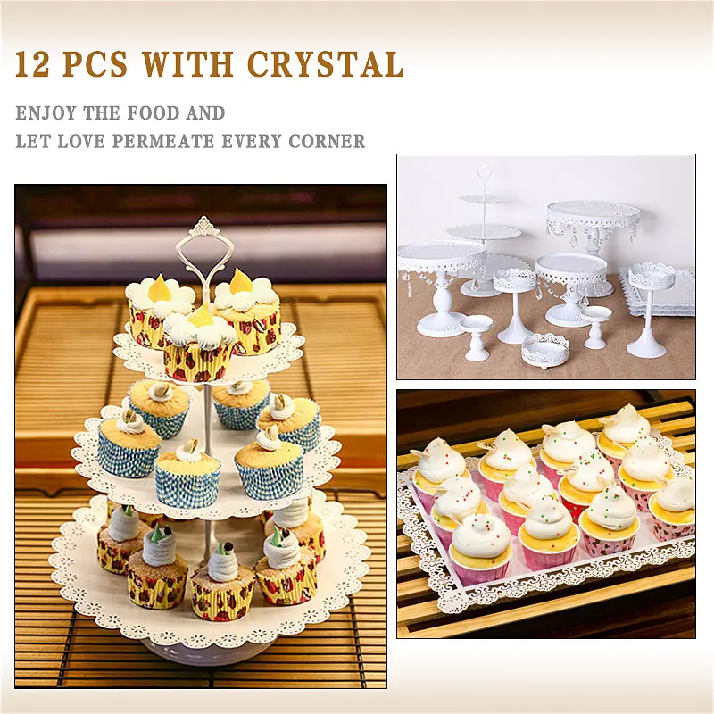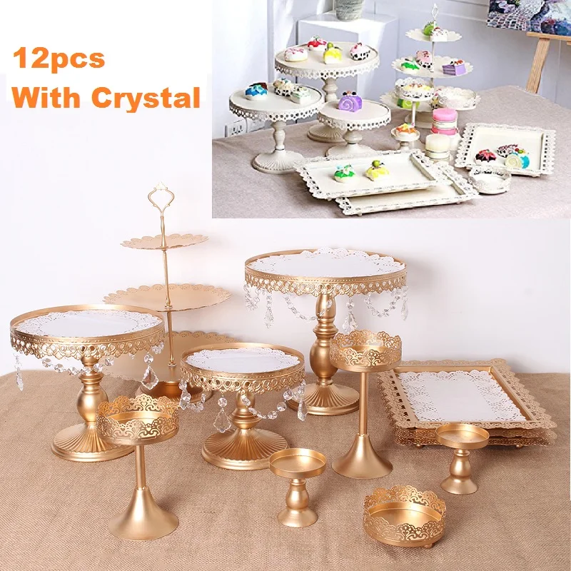 12PCS Cake Stand Set Round Metal Crystal Cupcake Dessert Display Tray Rack Wedding Decoration Kitch