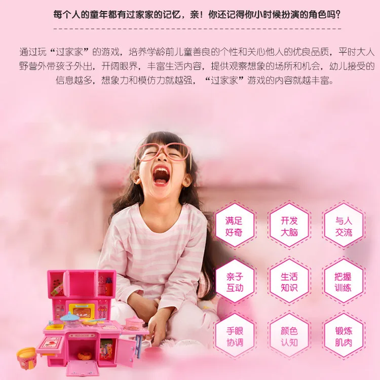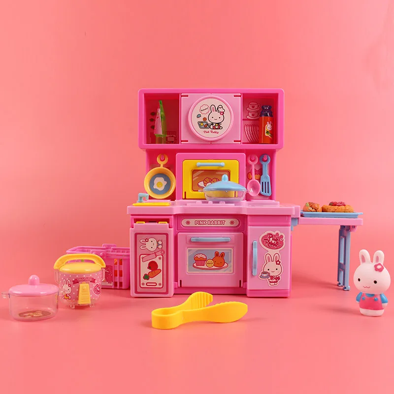 Hot Sale Yi Yan Pink Hole-Play House Toys Children Mini Princess Kitchen One-piece Kitchen Cabinet Toy Set 1