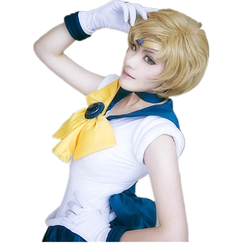 Review Sailor Moon Sailor Uranus Tenoh Haruka Short Linen Blonde Heat Resistant Synthetic Hair Cosplay Cos