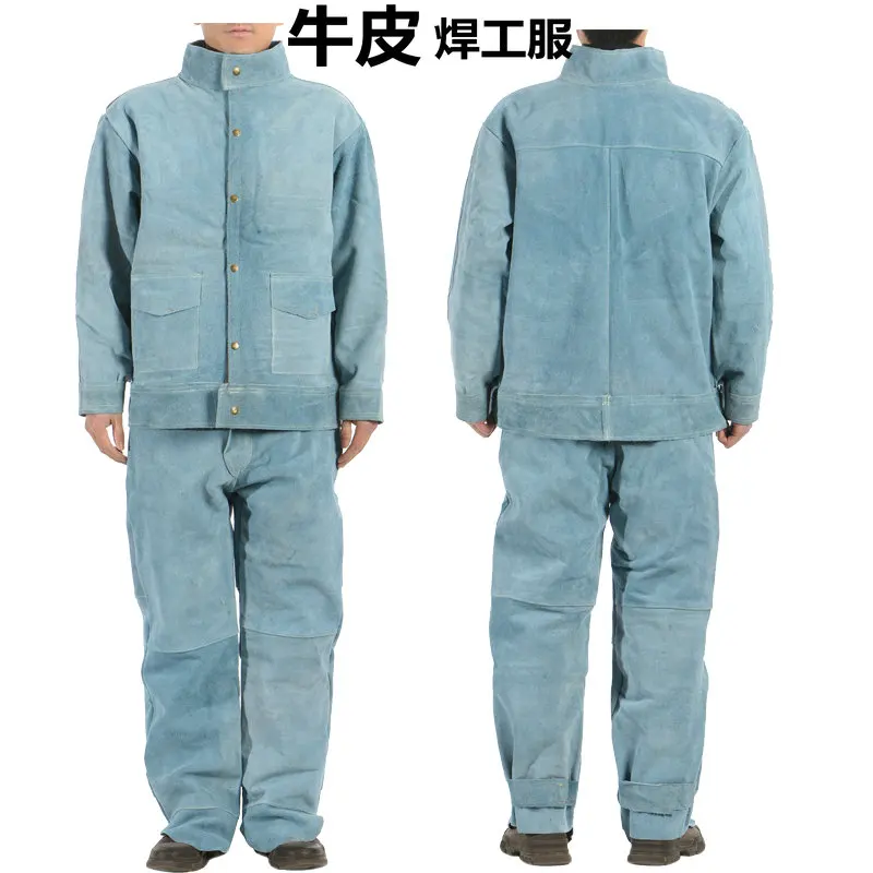 Real Cow Leather Mens Heat-proof Electric Welding Workwear Workshop Uniforms Electrician Coveralls